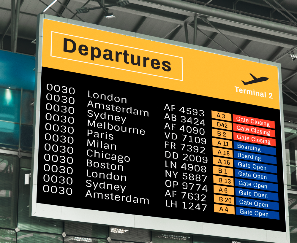 ¿Se ha fijado alguna vez en las pantallas electrónicas de los aeropuertos que muestran los próximos vuelos?